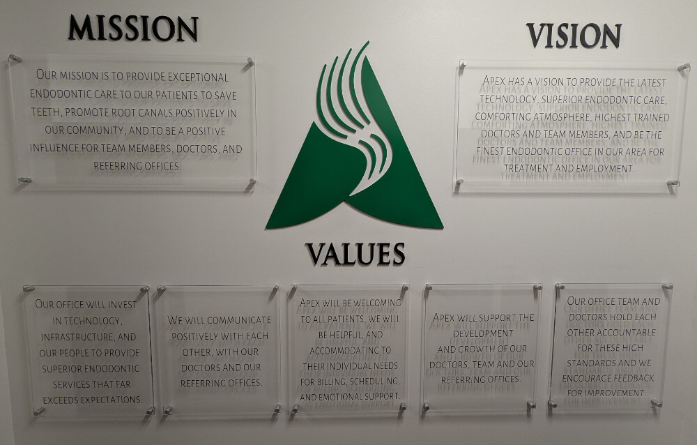 Apex has a vision to provide the latest technology, superior endodontic care, comforting atmosphere, highest trained doctors and team members, and be the finest endodontic office in our area for treatment and employment.